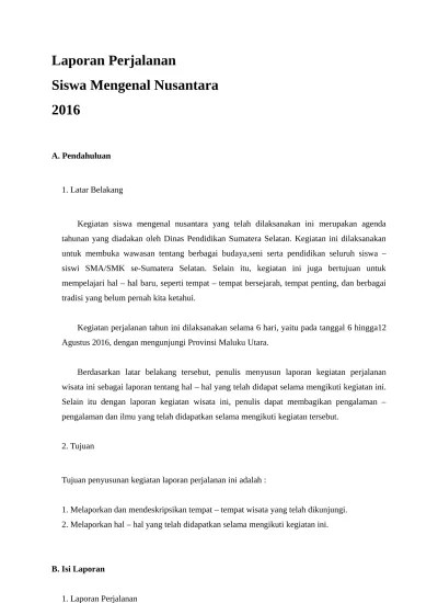Berikut data lengkap tentang contoh laporan perjalanan wisata ke malang. Materi pelajaran di sekolah, salah satunya menulis laporan perjalanan. Setelah melihat film di theatre imax keong mas, kami semua melanjutkan perjalanan menuju kota bogor, untuk mengunjungi objek kedua yaitu taman safari . 1.2 tujuan perjalanan wisata tujuan kegiatan study tour dan laporan. Tugas laporan perjalanan study tour ke malang dan bromo sekolah sma ali maksum.