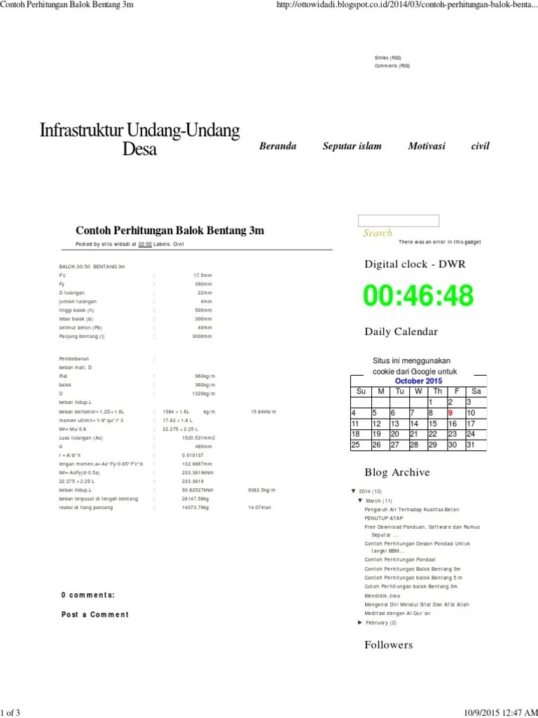 Jadi dimensi balok yang digunakan untuk bentang 9 meter adalah lebar 40 cm dan tinggi 75 cm gan.